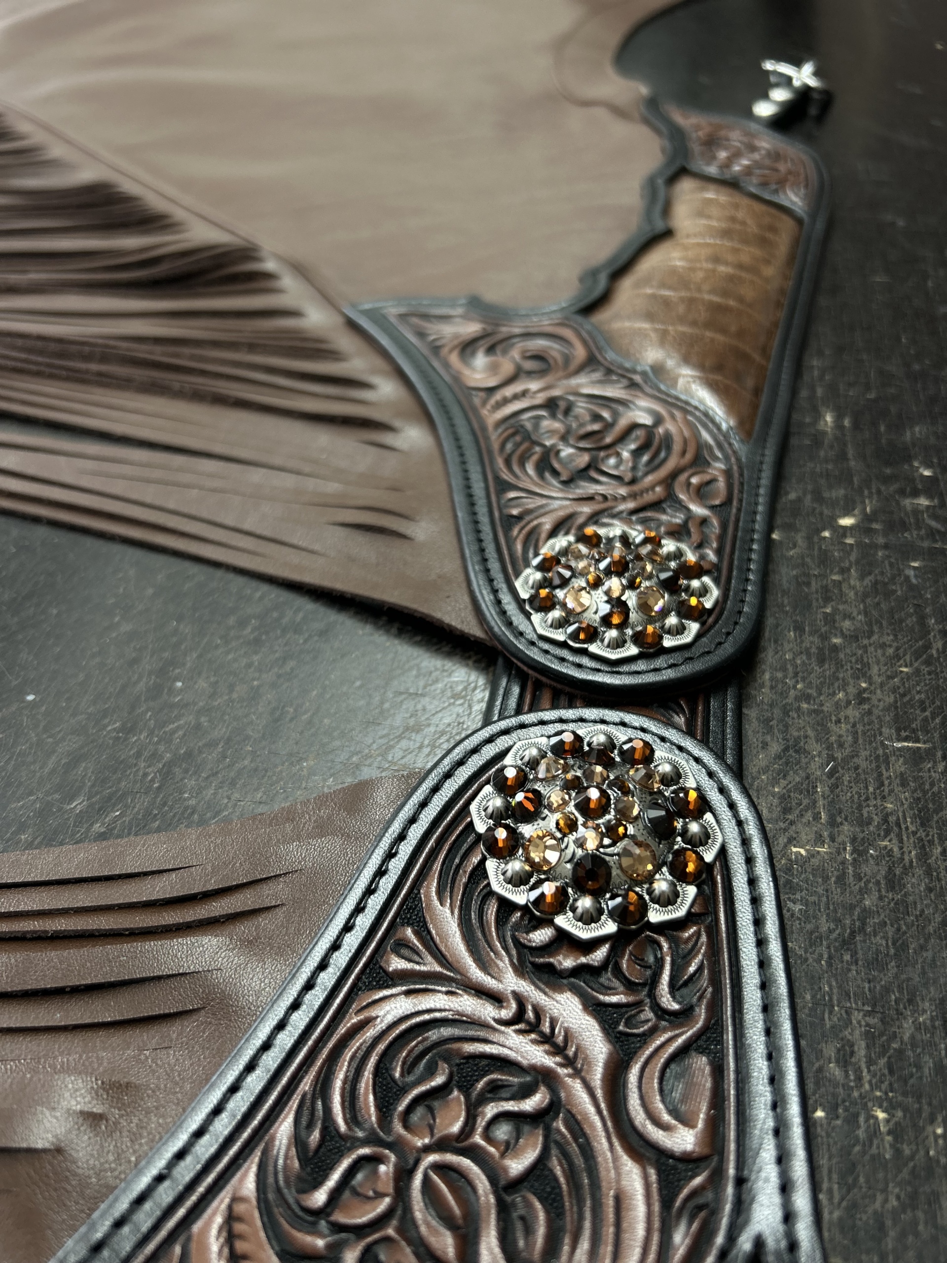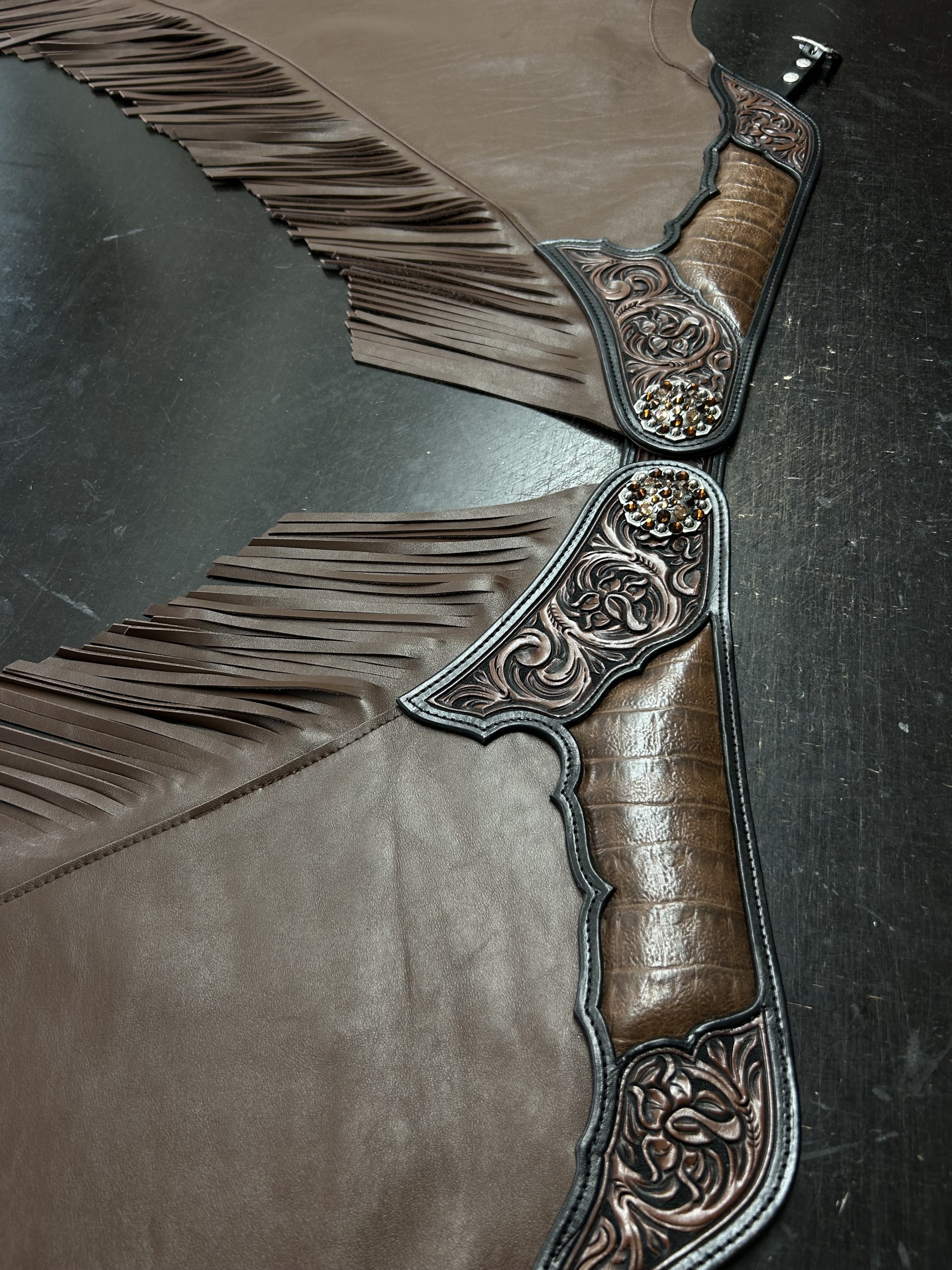 Chaps aus Rinds-Leder, punzierter Besatz, Inlay mit Kroko-Prägung