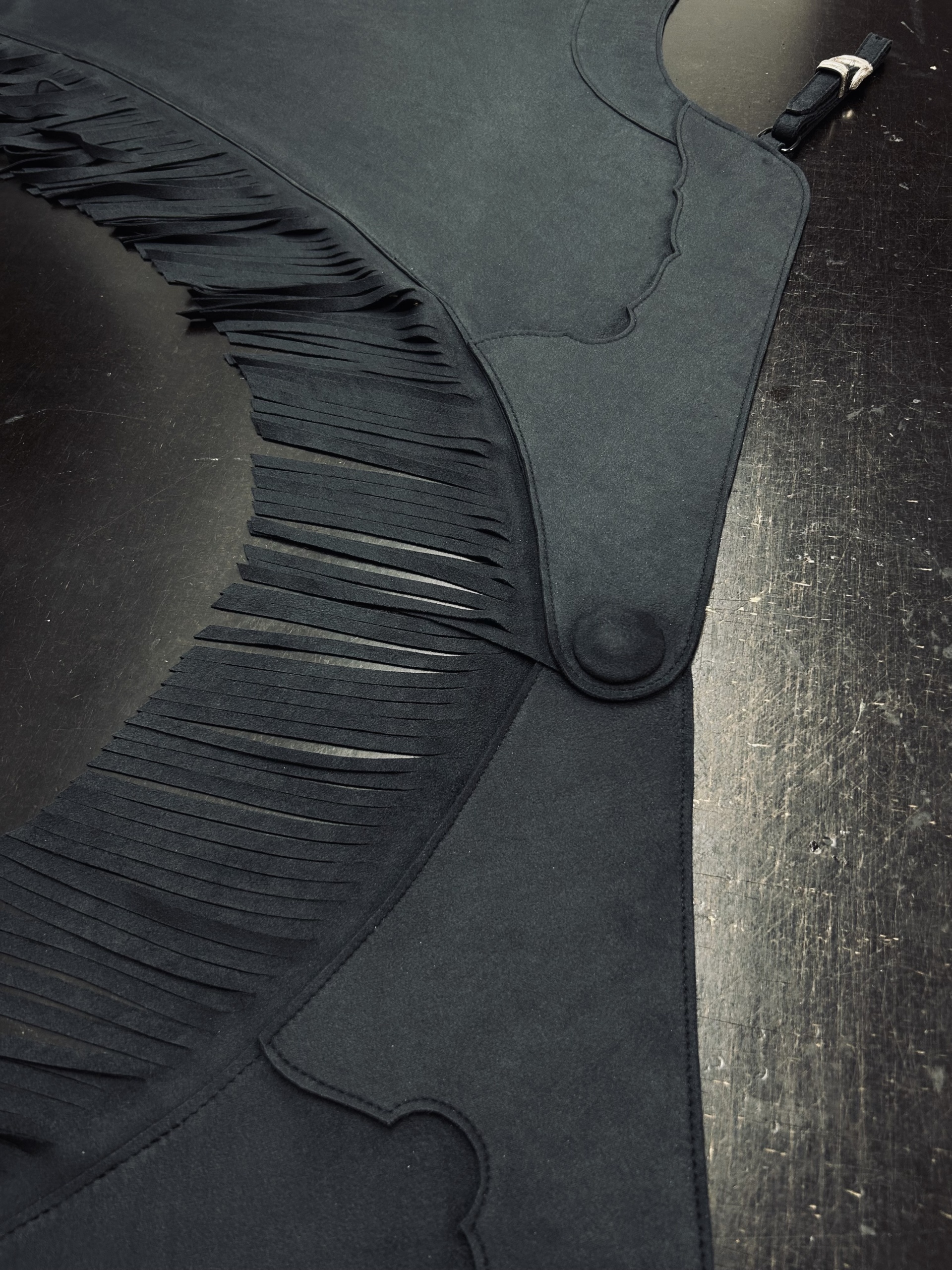 Super-Stretch Chaps in schwarz, überzogener Concho